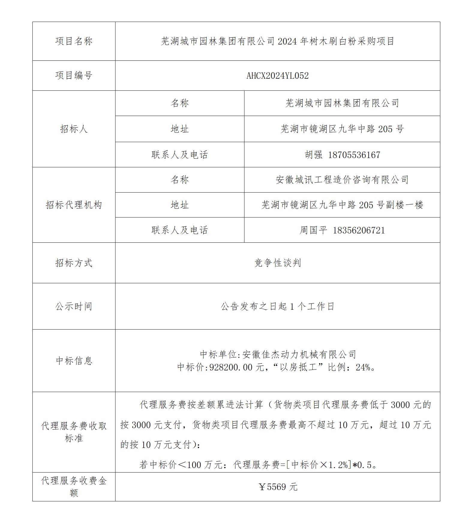 蕪湖城市園林集團有限公司2024年樹(shù)木刷白粉采購項目中標結果公告