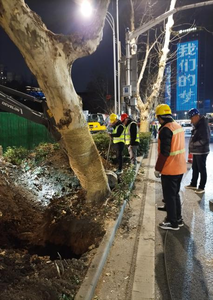 為保障蕪湖市長(cháng)江路(新市口立交-臨江橋)下穿工程穩步推進(jìn),園林集團啟動(dòng)了長(cháng)江路法梧集中移植任務(wù)。從2月14日起,每天夜晚10點(diǎn)至凌晨6點(diǎn),園林集團7個(gè)施工隊連續奮戰9日,順利完成了長(cháng)江路29棵法梧和9棵香樟的移植工作。