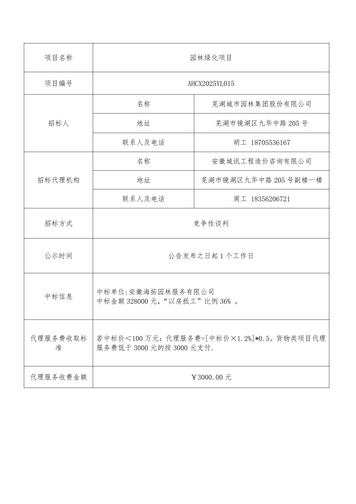 園林綠化項目成交結果公告