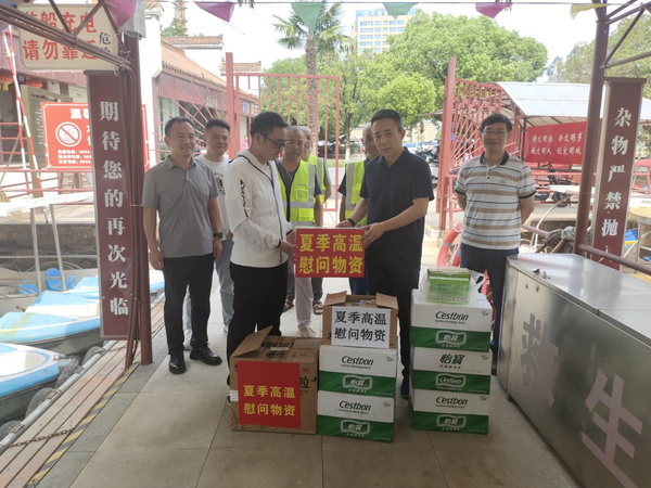 夏日炎炎,熱浪襲人。7月16日下午,帶著(zhù)集團對奮戰在高溫一線(xiàn)職工的深切關(guān)懷與牽掛,集團領(lǐng)導班子夏登彬、岳雷、盧夢(mèng)汀一行,頂烈日、冒酷暑,先后深入鏡湖公園游船碼頭、赭山公園動(dòng)物園、神山公園及汀棠公園等一線(xiàn)崗位,開(kāi)展夏季高溫慰問(wèn)活動(dòng),并對各公園水域的防溺水安全工作進(jìn)行了重點(diǎn)檢查。