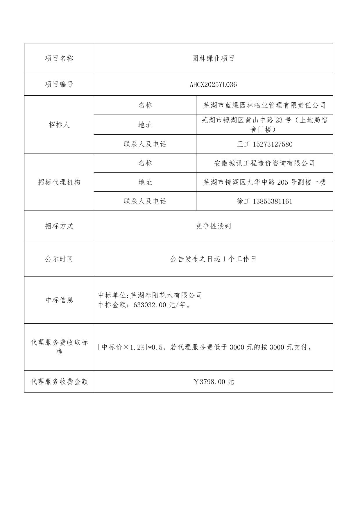 園林綠化項目成交結果公示