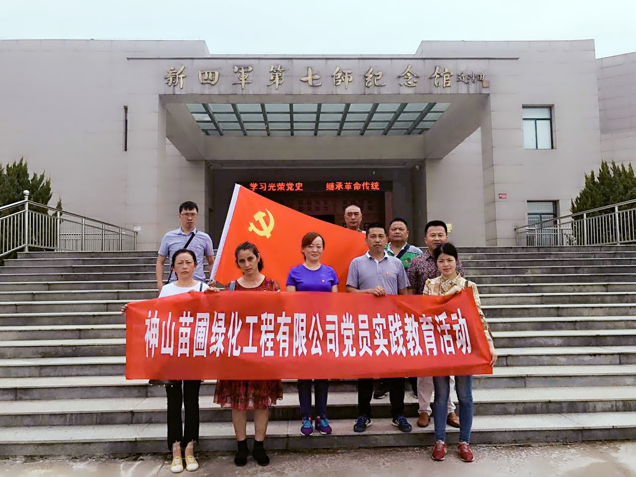 為紀念建黨96周年,深入推進(jìn)“兩學(xué)一做”學(xué)習教育,加強黨員黨性修養,堅定黨員理想信念,根據集團黨委安排,7月14日,在集團公司副總、工會(huì )主席曹慧同志、神山苗圃綠化工程有限公司黨支部書(shū)記張仁大同志的帶領(lǐng)下,神山苗圃綠化工程有限公司黨支部全體黨員,頭頂烈日,冒著(zhù)酷暑,赴無(wú)為縣紅廟鎮參觀(guān)新四軍七師紀念館,重溫入黨誓詞,追尋革命足跡,體驗紅色精神。