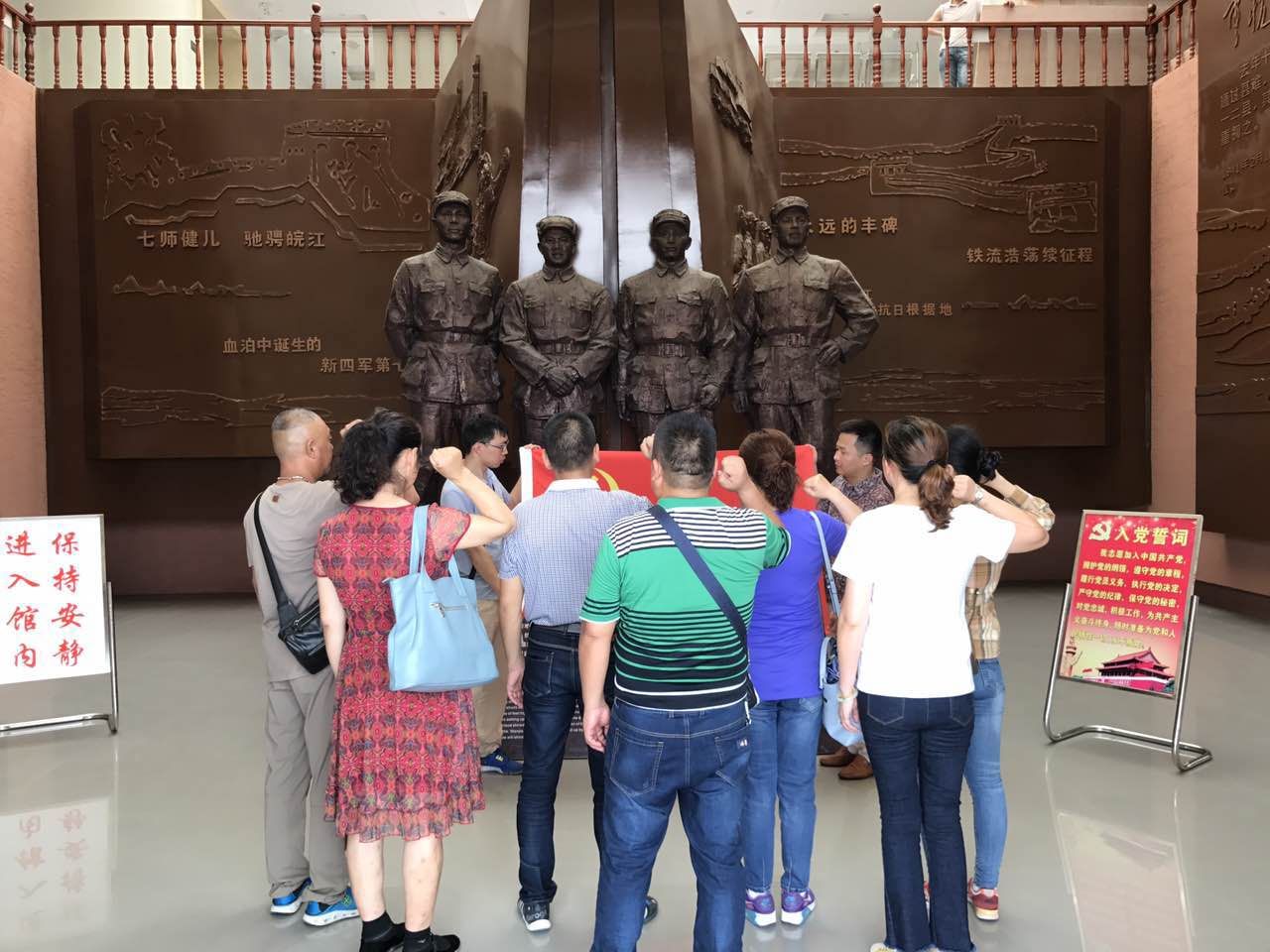 新四軍七師是在皖南事變血泊中誕生的一支革命部隊,是皖江抗日根據地的中堅力量,在抗日戰爭史上寫(xiě)下了光輝的一頁(yè)。參觀(guān)期間,在講解員的引導下,全體黨員干部沿著(zhù)革命的足跡,先后參觀(guān)了"皖江抗日起怒潮"、"血泊中誕生的新四軍第七師"、"第七師健兒馳騁皖江"、"永遠的豐碑"等8個(gè)展廳。展館內,圖文并茂的展板陳列,高科技的聲光電資料,生動(dòng)還原了新四軍七師的光榮業(yè)績(jì)和不朽精神。透過(guò)一件件印滿(mǎn)歲月痕跡的文物和一張張珍貴的歷史照片,參觀(guān)的黨員同志仿佛看到了當年新四軍七師帶領(lǐng)戰士抗擊日寇,為保家衛國、人民解放、建立新中國舍生忘死、浴血奮戰、頑強抗爭、先赴后繼的壯烈場(chǎng)景,大家的心靈深受震撼,為革命先烈拋頭顱灑熱血,不怕?tīng)奚?、不屈不撓的革命精神深深感?dòng)。紛紛表示,要永遠銘記革命先烈的英雄事跡,永遠以先烈的精神激勵、鞭策自己,努力提高思想覺(jué)悟和政治素質(zhì),堅定理想信念、純潔黨性、牢記宗旨,在本職崗位上作好表率、扎實(shí)工作,爭做合格黨員,用實(shí)際行動(dòng)踐行“兩學(xué)一做”,推動(dòng)公司又好又快發(fā)展。