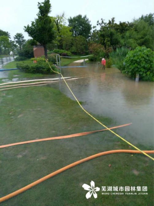 截至目前為止,鏡湖公園大小碼頭每天對每條游船進(jìn)行兩次排水工作,確保游船安全。同時(shí)對公園內積水的觀(guān)景橋、亭臺等設置警戒線(xiàn)并進(jìn)行強排。神山公園內積水已經(jīng)排除,雕塑公園一期水塘水位暴漲,已安排排水泵強排。中央公園、扁擔河公園受扁擔河水倒灌影響,水位扔超過(guò)園內主路,園林集團已在公園各入口設置警戒線(xiàn),封閉公園并安排保安加強巡邏;中央公園車(chē)庫兩個(gè)入口均已安排設置防水土坡,防止河水倒灌中央公園車(chē)庫。九蓮塘公園仍舊水位較高,九曲橋和二號親水平臺封閉,園林集團安排專(zhuān)人每隔一段時(shí)間對出水口進(jìn)行一次清理,保證排水暢通。