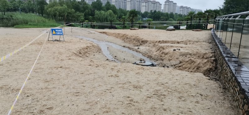 隨后,神山公園根據童朝陽(yáng)董事長(cháng)的工作指示,及時(shí)對原先的防汛應急預案進(jìn)行了完善,重新整合管養區域的應急隊伍人員,保障應急人員在崗在位,24小時(shí)保持通訊暢通。園區內班組人員、養護人員和保安人員共同合作,對各個(gè)地方進(jìn)行不間斷巡查,不留死角,特別是對水系附近、山體附近的情況密切關(guān)注,發(fā)現汛情安全隱患及時(shí)排除。對水系附近、園區積水、山體積水的危險區域,我們都及時(shí)拉設了警示帶、警示牌,提醒游客及工作人員不要靠近;巡邏保安也會(huì )對靠近危險區域的游客進(jìn)行勸離,保障游客在園區內的安全。