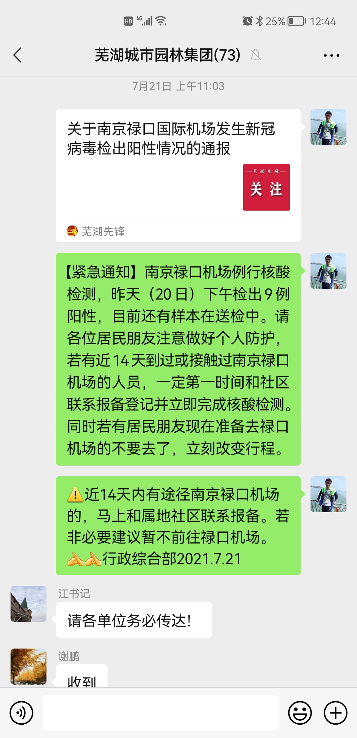 7月20日,南京祿口機場(chǎng)例行核酸檢測,檢出9例陽(yáng)性。情況發(fā)生后,園林集團黨委高度重視。結合市新冠疫情防控暨推進(jìn)“六穩”工作指揮部(2021第2號)文件精神,集團公司主要領(lǐng)導第一時(shí)間作出批示,立即啟動(dòng)《園林集團新冠從嚴快速做好各項防控措施》。