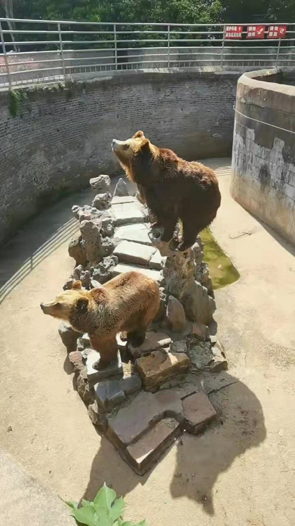 瞧!那兩只可愛(ài)的棕熊正昂著(zhù)頭,仿佛在說(shuō):“待到疫情散去,歡迎大家來(lái)赭山公園看我們!”。