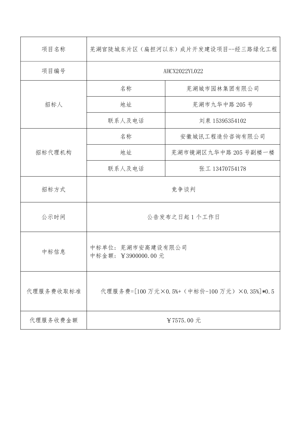 蕪湖官陡城東片區(扁擔河以東)成片開(kāi)發(fā)建設項目--經(jīng)三路綠化工程中標結果...