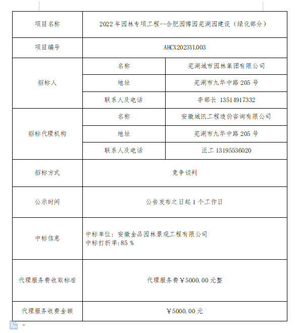 2022年園林專(zhuān)項工程--合肥園博園蕪湖園建設(綠化部分)中標結果公示