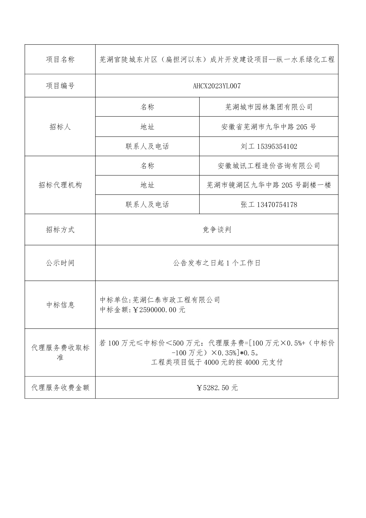 蕪湖官陡城東片區(扁擔河以東)成片開(kāi)發(fā)建設項目--縱一水系綠化工程中標結...