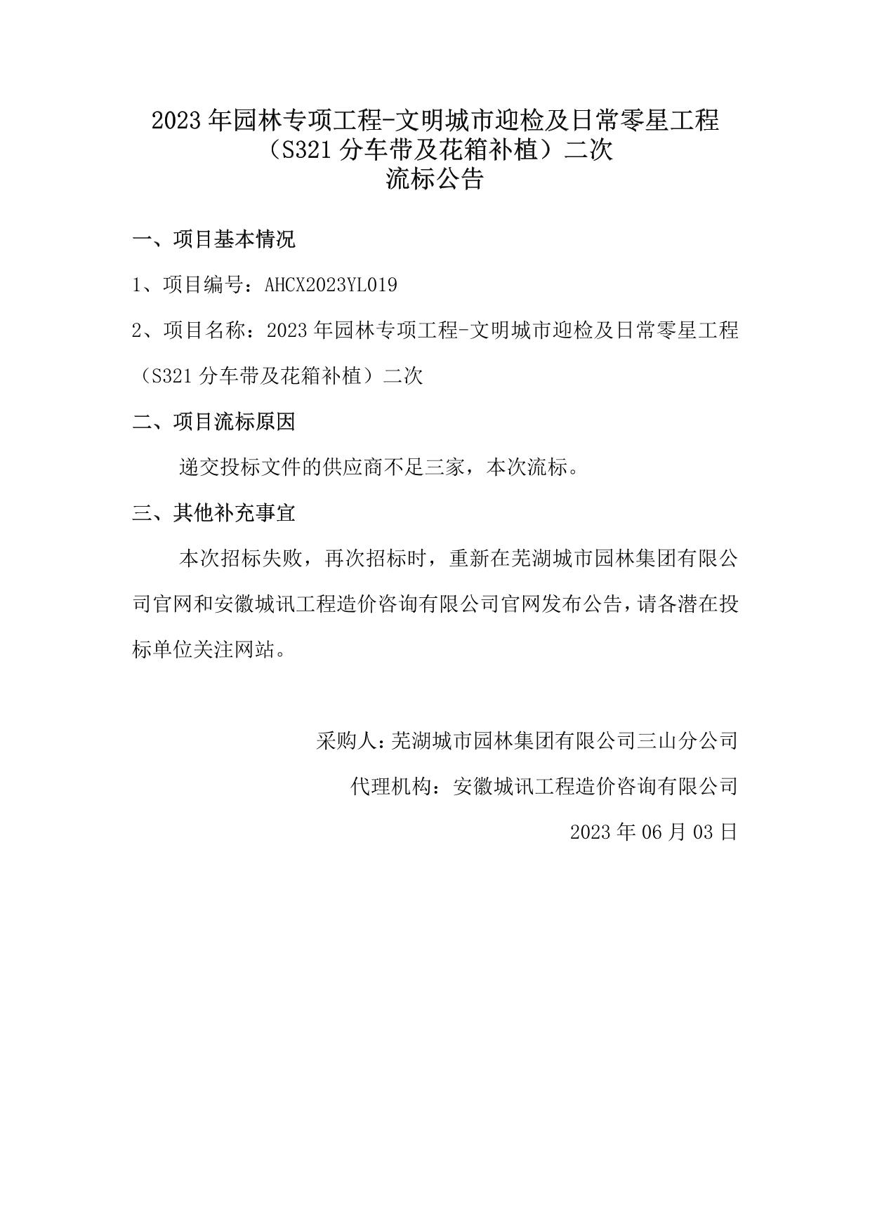 2023年園林專(zhuān)項工程-文明城市迎檢及日常零星工程(S321分車(chē)帶及花箱...