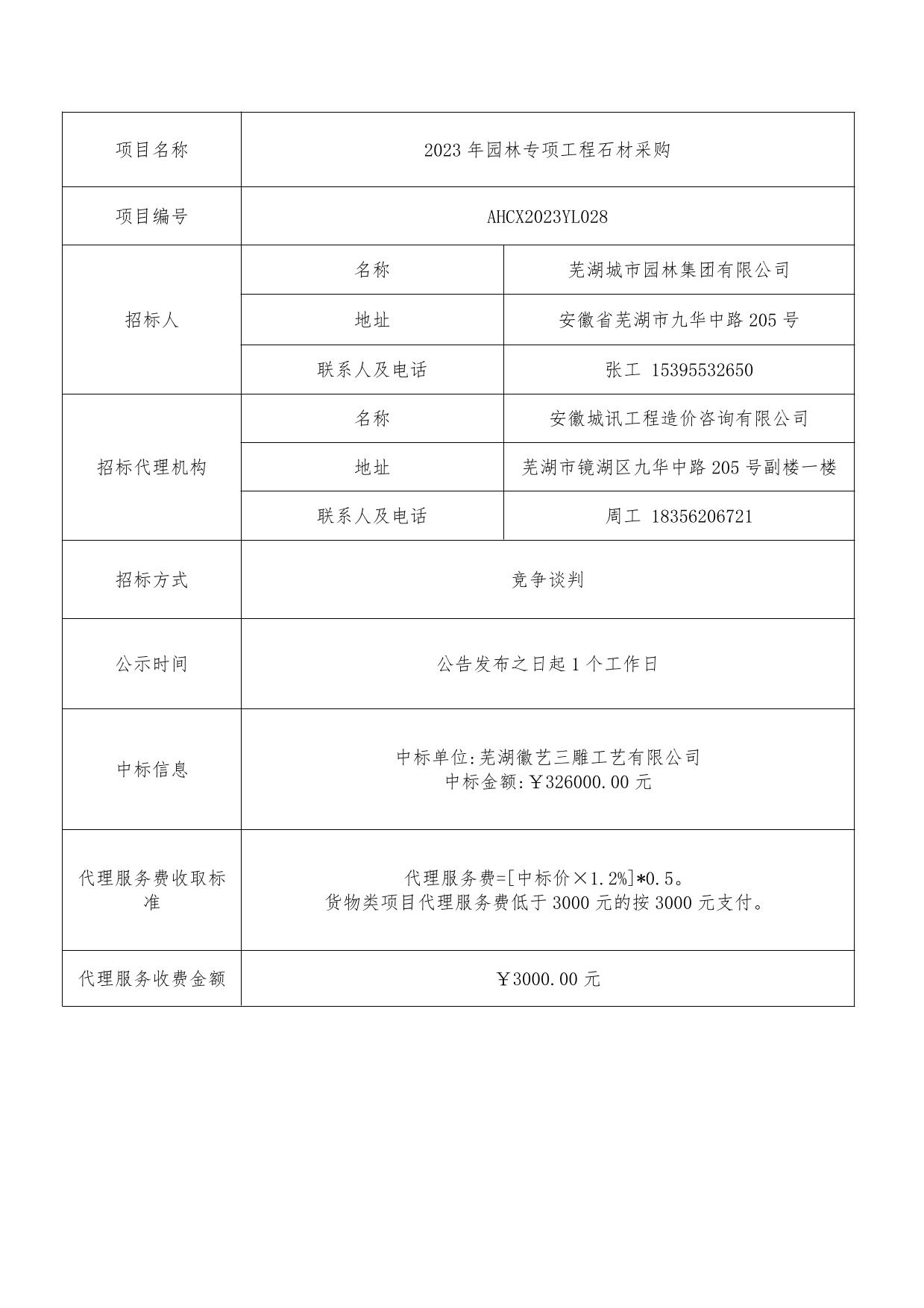 2023年園林專(zhuān)項工程-石材采購中標結果公示