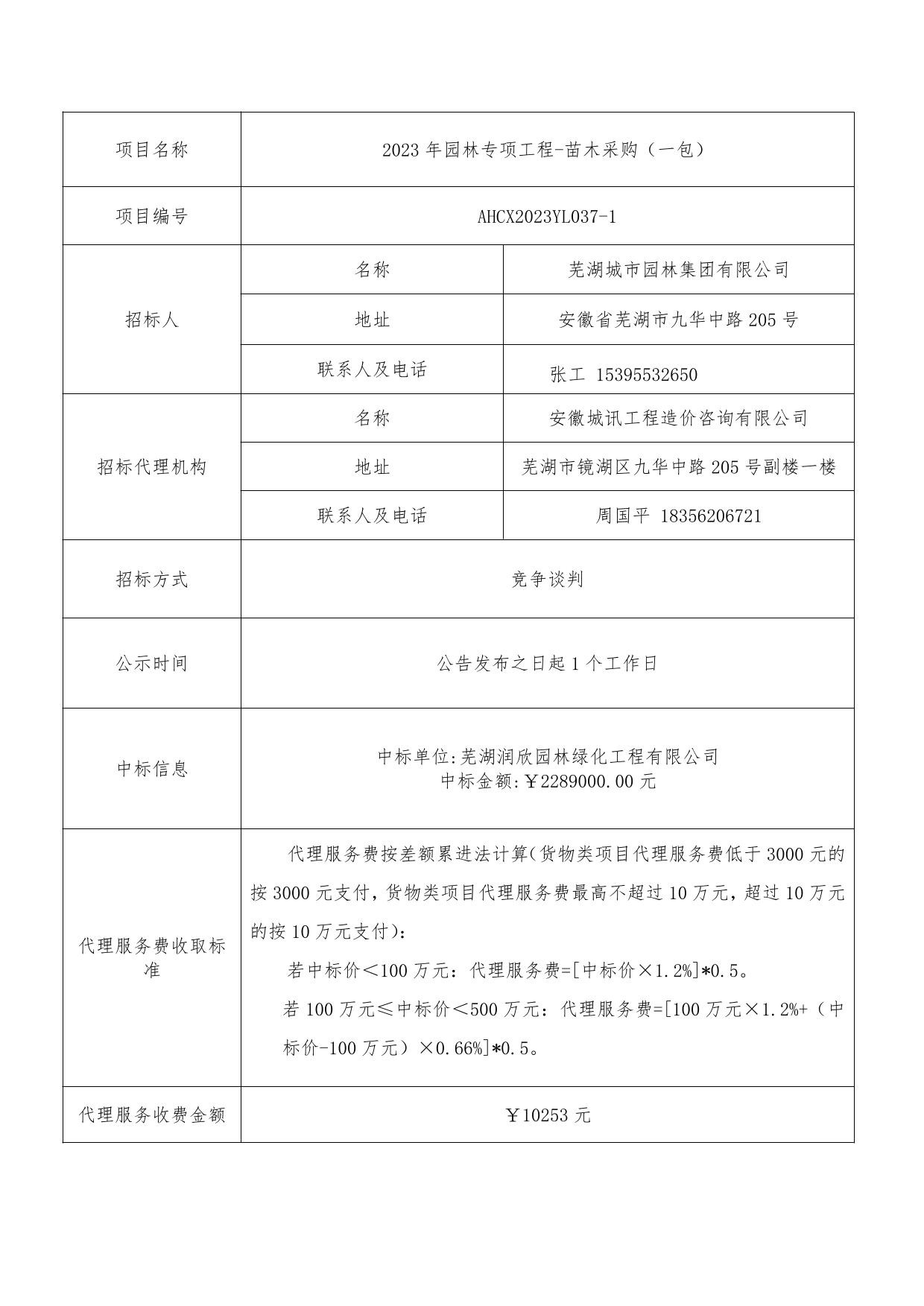 2023年園林專(zhuān)項工程-苗木采購(一包)中標結果公示