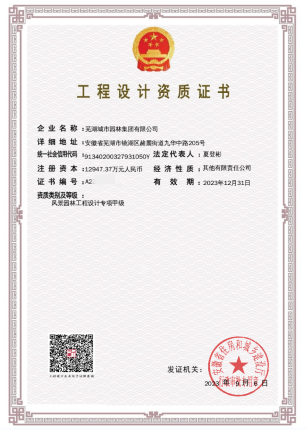 近日,蕪湖城市園林集團通過(guò)安徽省住建廳資質(zhì)申報的各項審核,成功取得風(fēng)景園林工程設計專(zhuān)項甲級資質(zhì),標志著(zhù)園林集團成為蕪湖市第三個(gè)擁有風(fēng)景園林設計甲級資質(zhì)的企業(yè)。