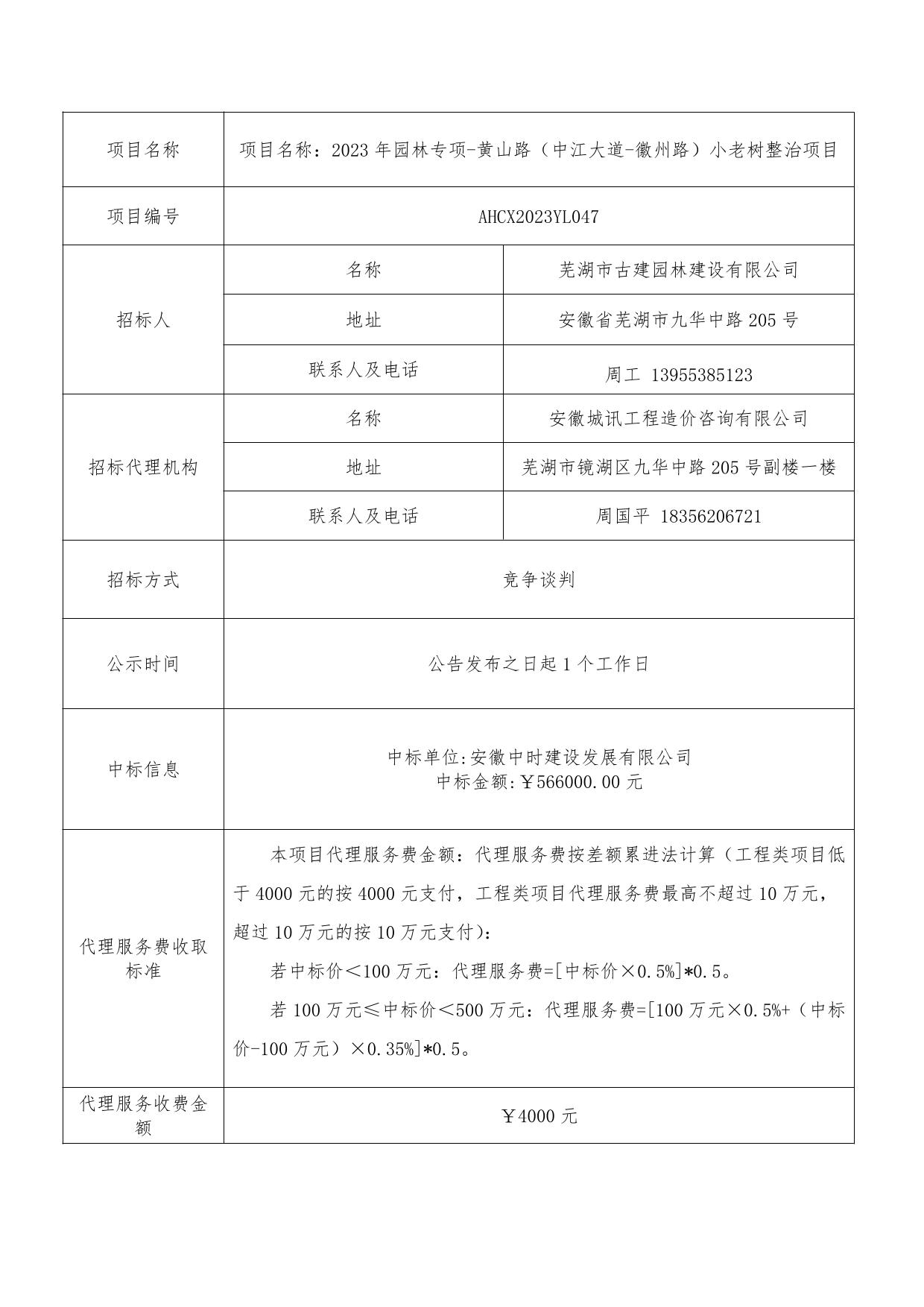 2023年園林專(zhuān)項-黃山路(中江大道-徽州路)小老樹(shù)整治項目中標結果公示