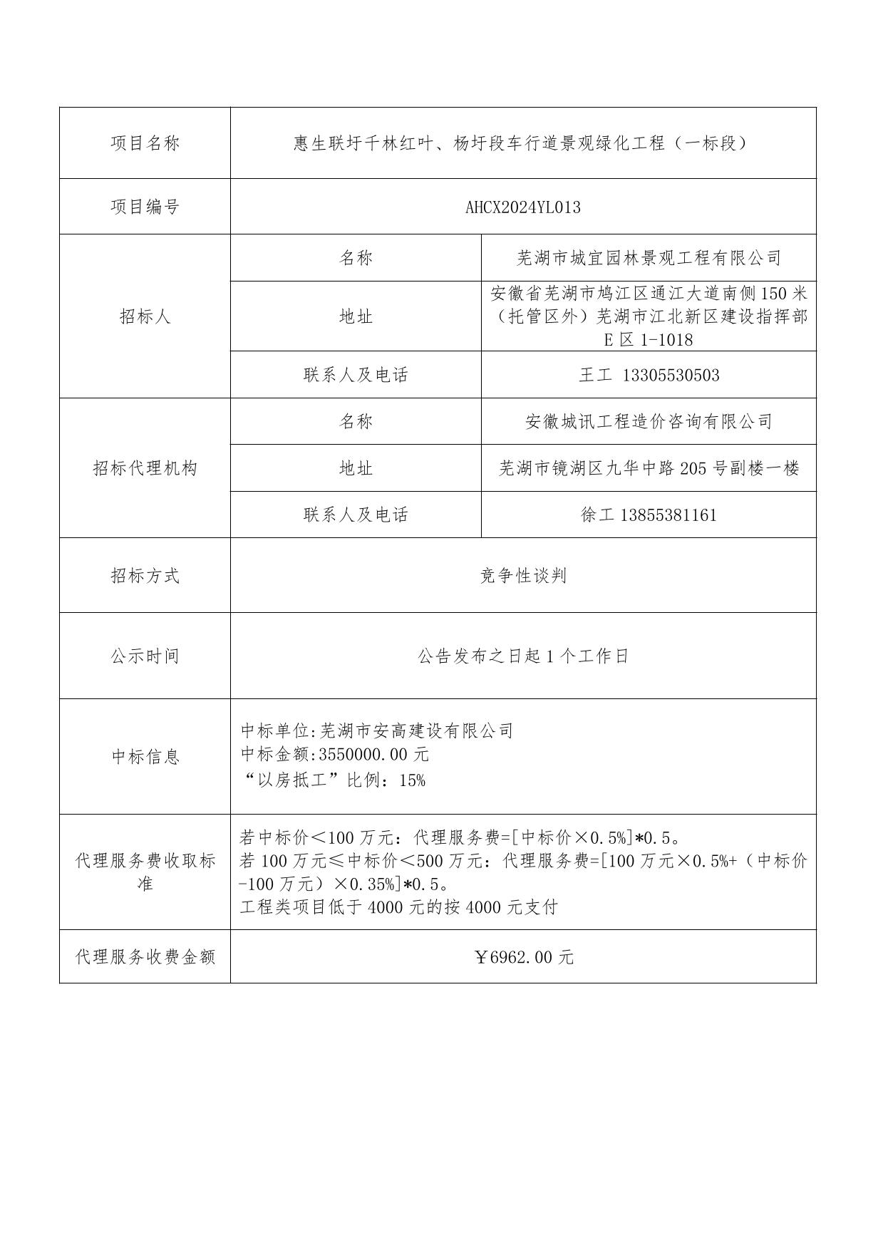 惠生聯(lián)圩千林紅葉、楊圩段車(chē)行道景觀(guān)綠化工程(一標段)中標結果公示