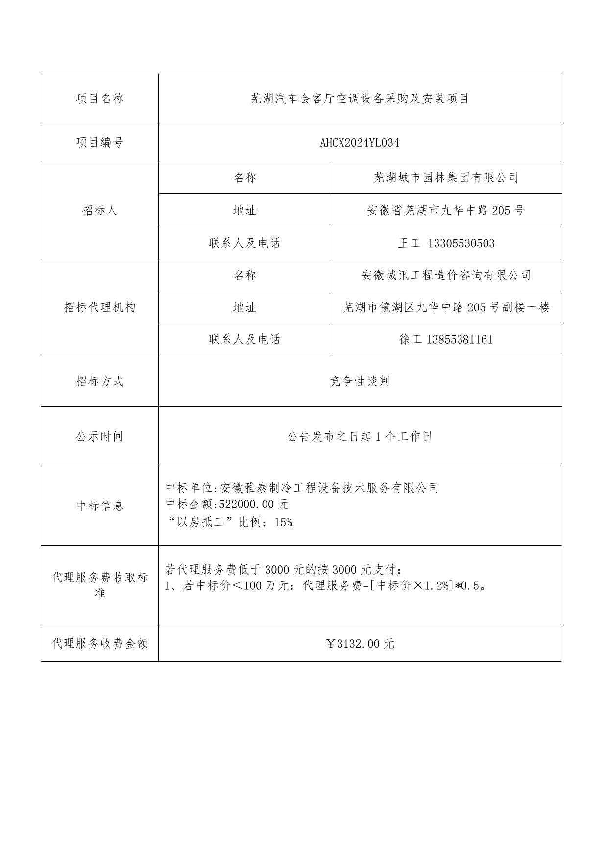 蕪湖汽車(chē)會(huì )客廳空調設備采購及安裝項目中標結果公告